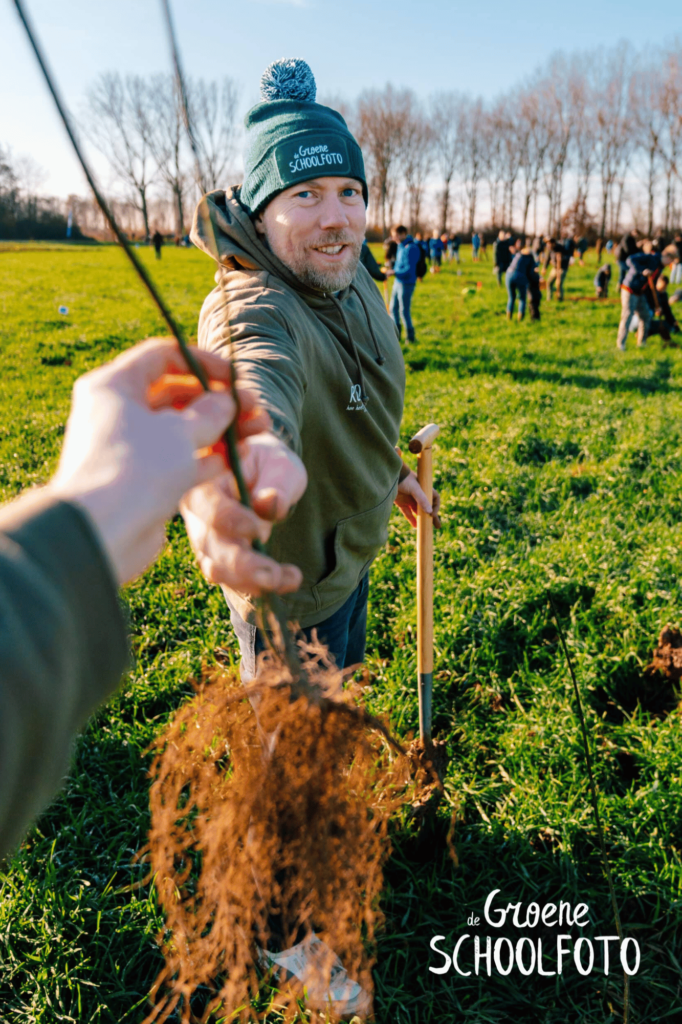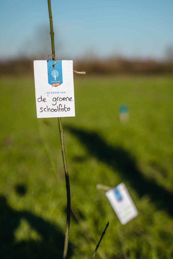 Bij iedere klas die we fotograferen, doneren we een boom. En elk jaar trekken we zelf onze laarzen aan om, samen met de helden van Trees for All, bomen te planten in Nederland.